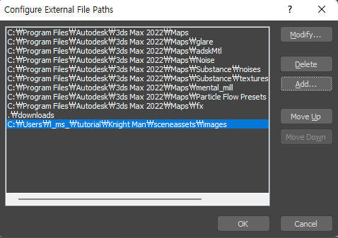 그리고 나머지 텍스처 파일들은 3ds Max 문서구조에서 sceneassets > images 폴더에 붙여넣는다.
