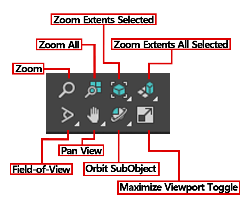 - Zoom Extents Selected : 선택한 오브젝트가 선택한 Viewport에 꽉차게 보이도록 확대/축소