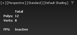 Show Statistics를 활성화 하면 아래와 같이 Viewport의 전체 Vertex와 Polygon 수가 표시된다.
